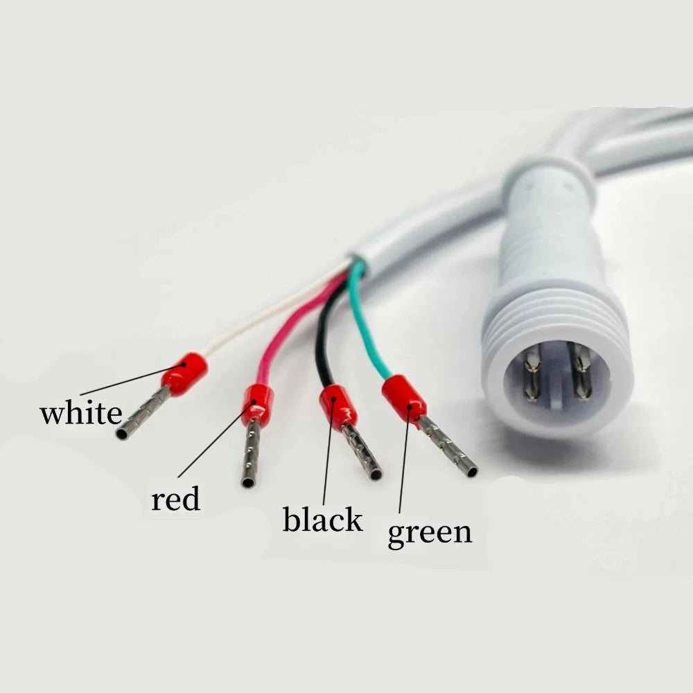 Diagram of a connector with color-coded pins labeled Green, Red, White, and Black.